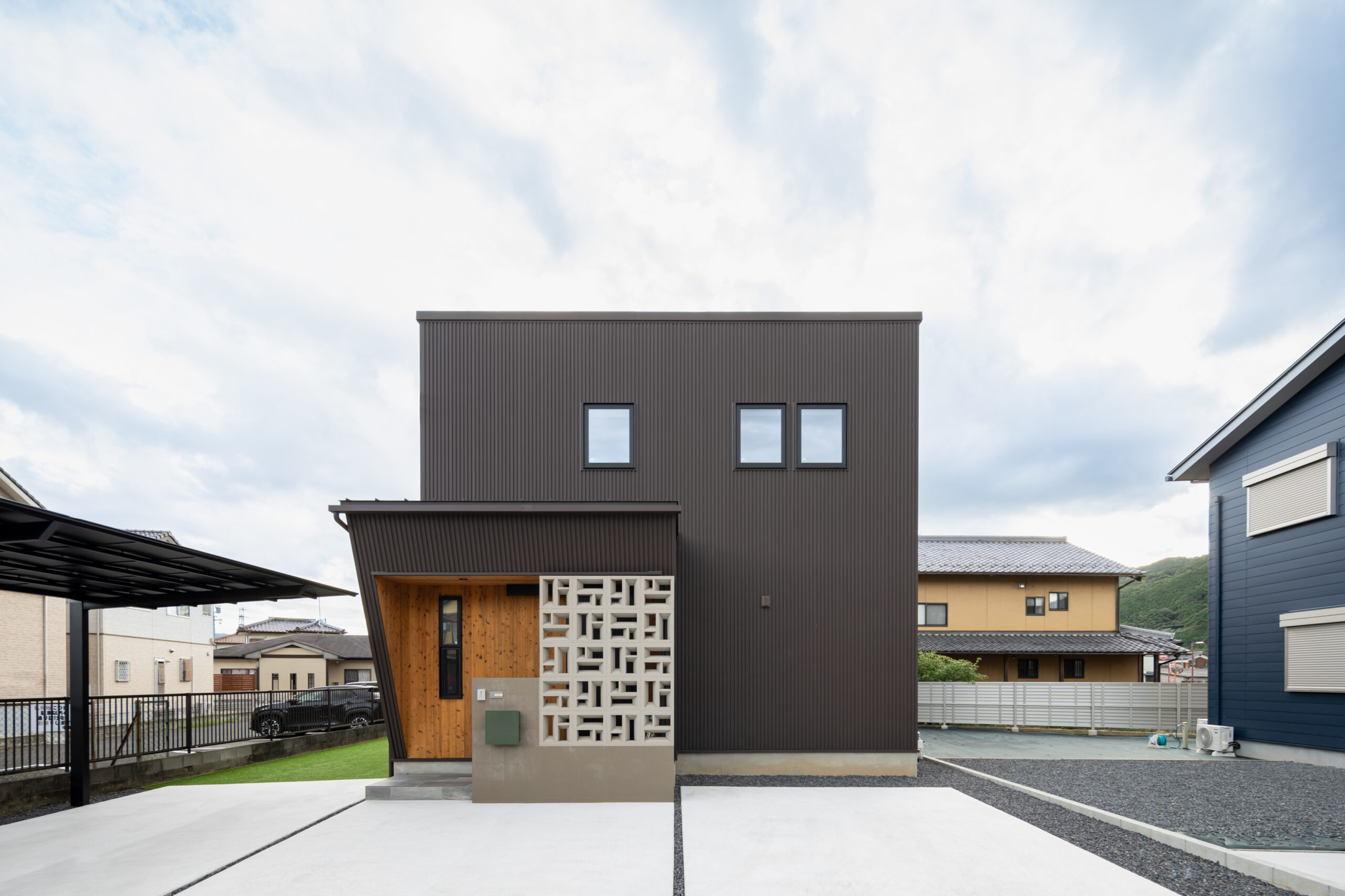 屋久島地杉を贅沢に使用した20坪の平屋。リビングを中心に回遊できる動線や大容量の収納、外とつながるウッドデッキが、心地よく効率的な暮らしを叶えます。格子が映える外観も印象的な、自然素材のぬくもりあふれる住まいです。